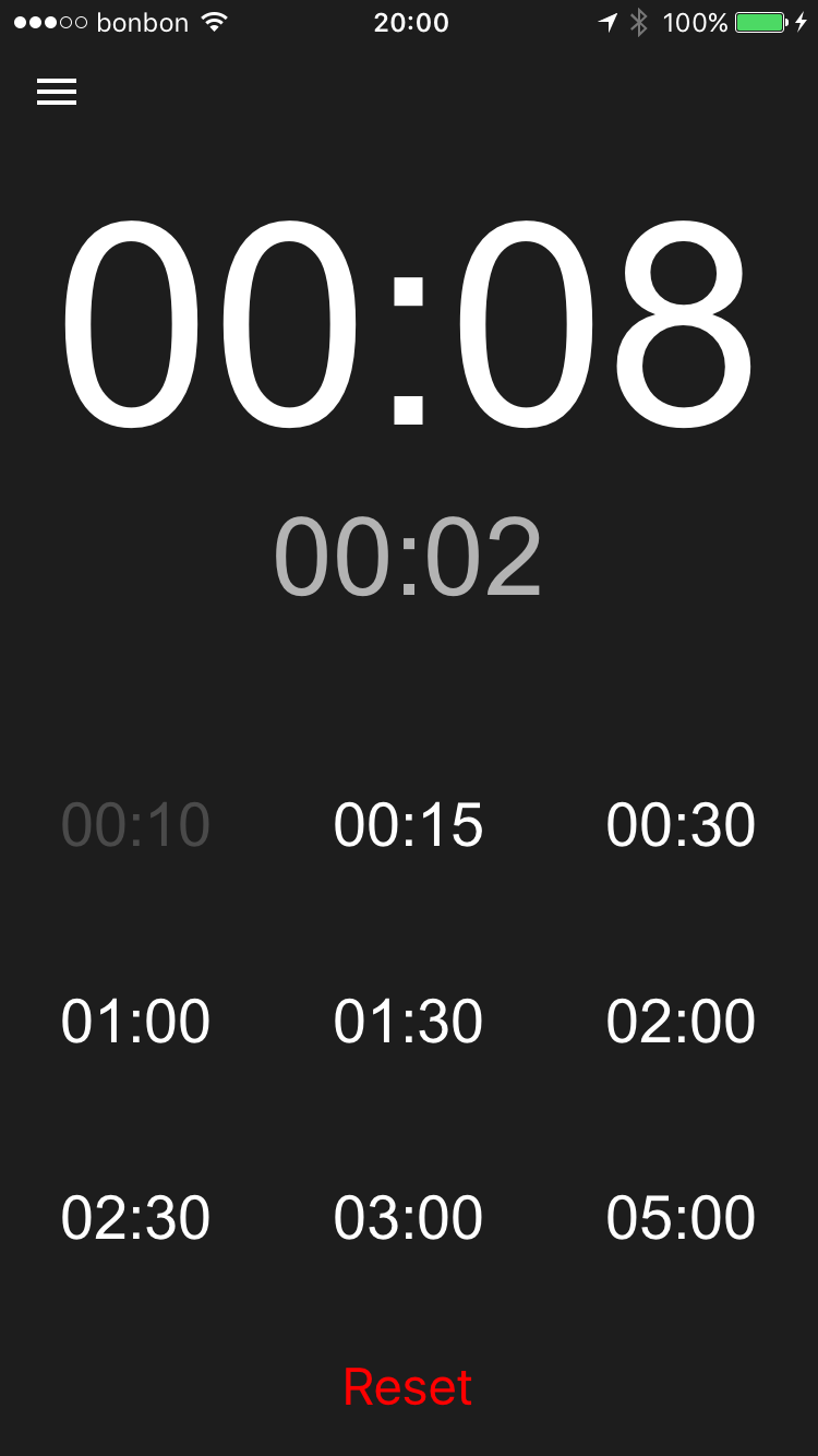 Start the countdown by pressing one of the nine timer buttons. Reset it if you don’t need it anymore.